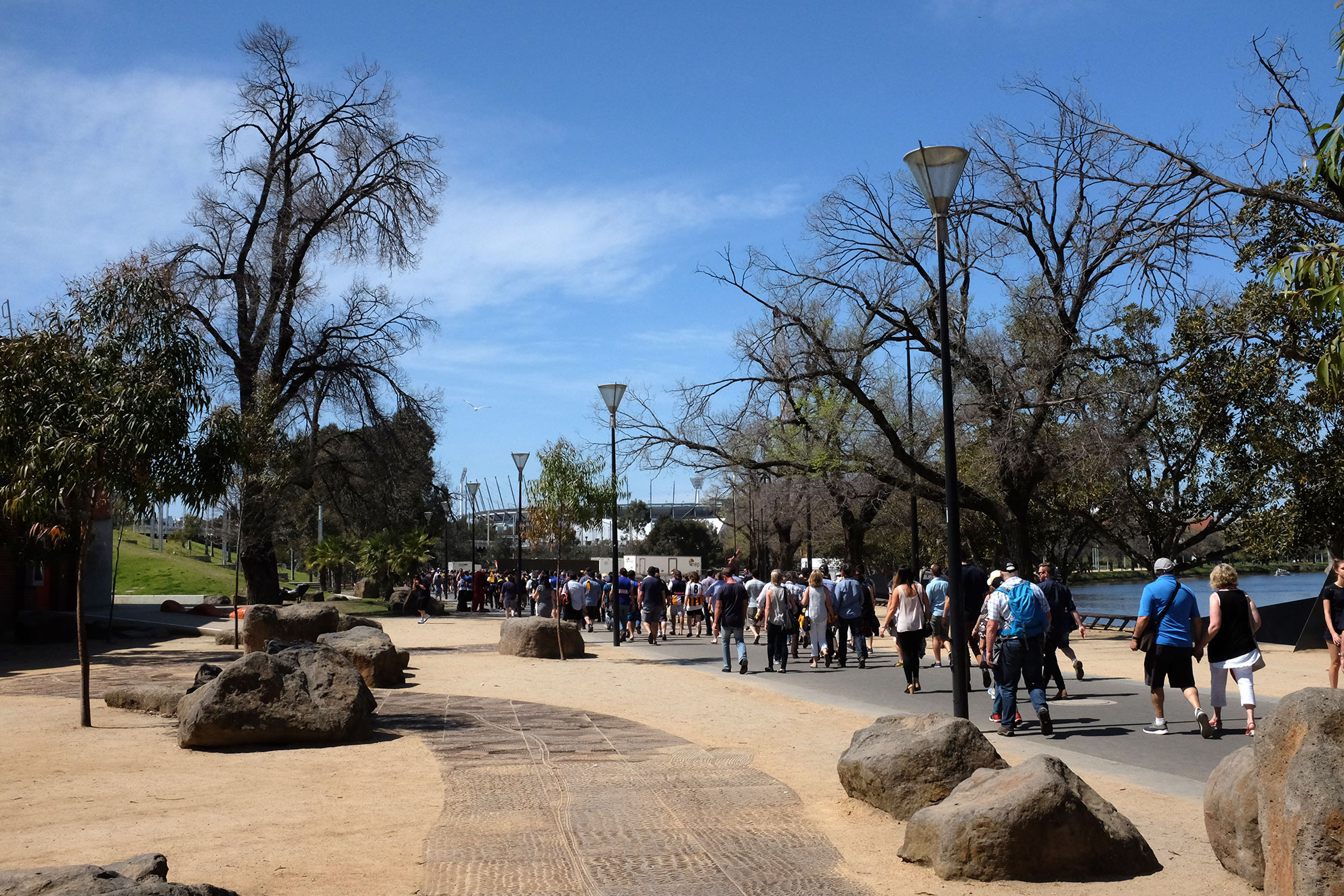 And as we walked back to our car along the Yarra River, the hoards of supporters were heading towards the MCG…to get ready for the battle of the birds to begin..