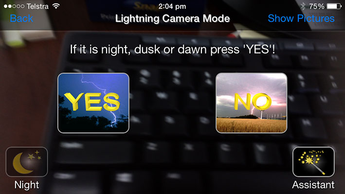 To get the app set up, you need to go into Photo Mode, and select whether it is night/dusk/dawn or daylight…